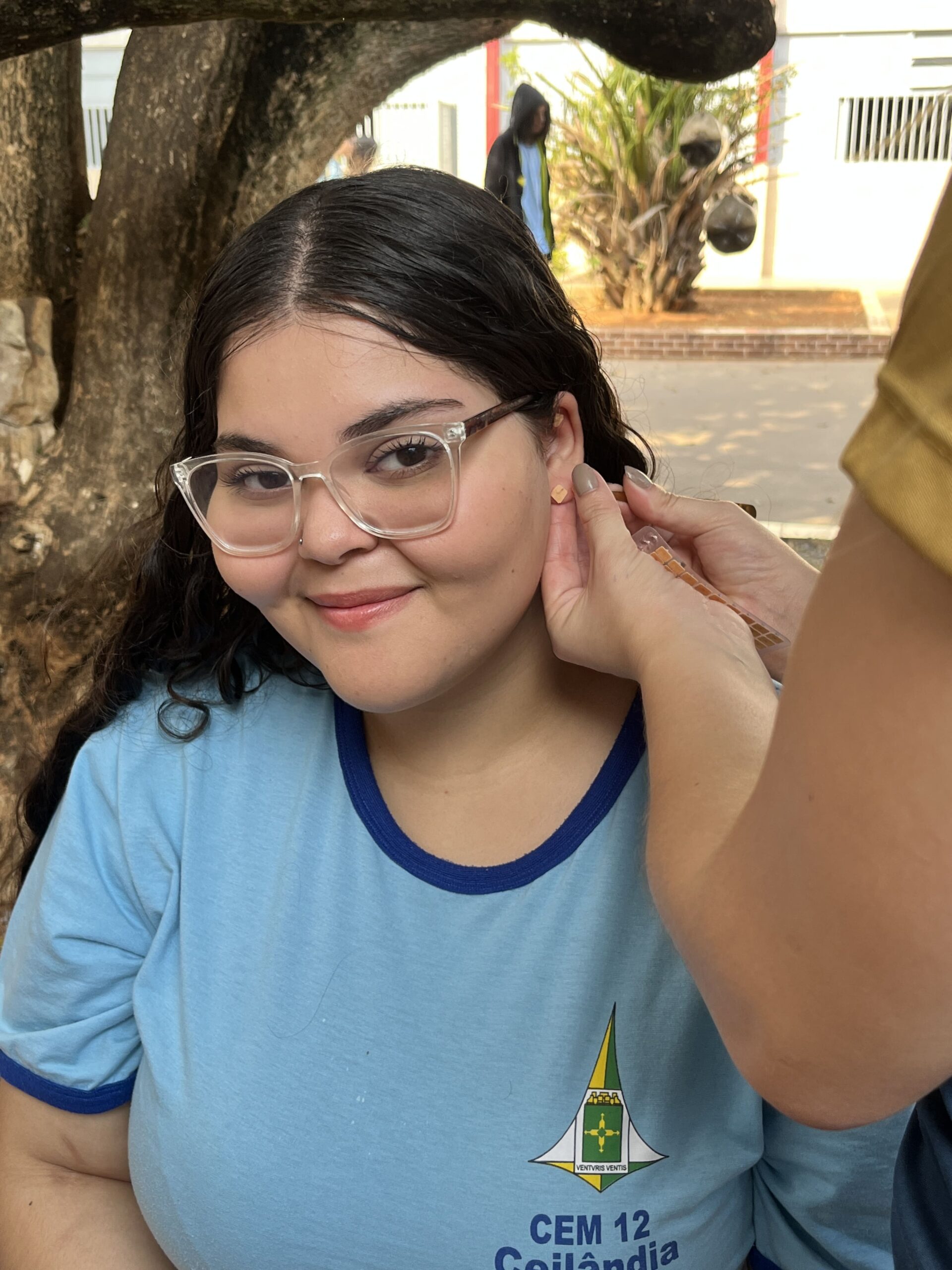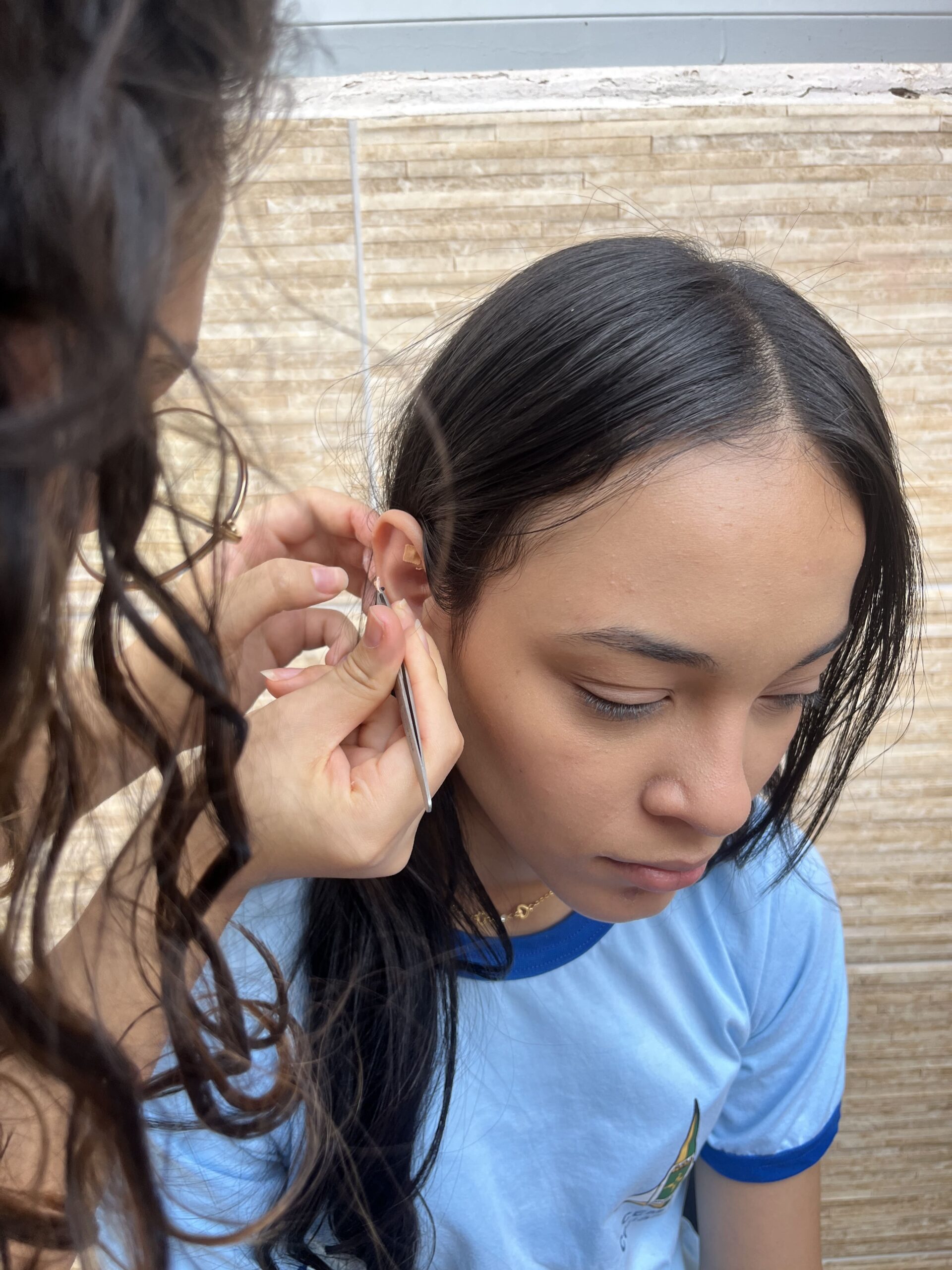 🌿 Além disso, foi oferecida a auriculoterapia, uma prática integrativa que estimula pontos específicos na orelha e auxilia na redução do estresse, da ansiedade e da insônia. Para os estudantes, essa experiência foi uma oportunidade de relaxar, cuidar da mente e se reconectar consigo mesmos.